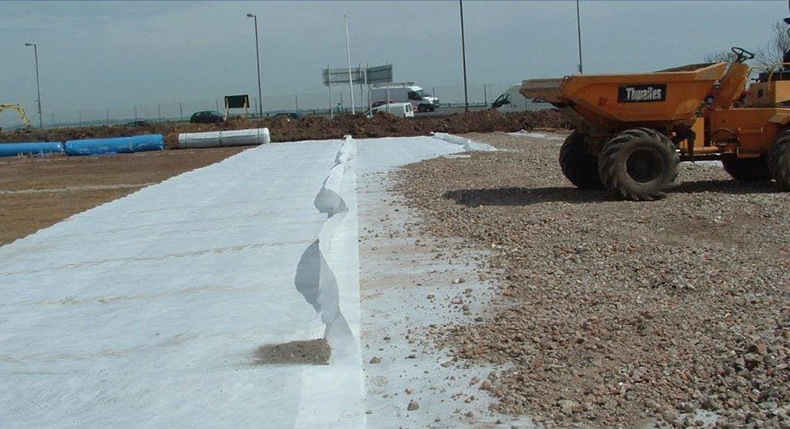 4、利用針刺土工布增強(qiáng)土體的抗拉強(qiáng)度和變形能力,增加建筑結(jié)構(gòu)的穩(wěn)定性,以改善土體質(zhì)量;
