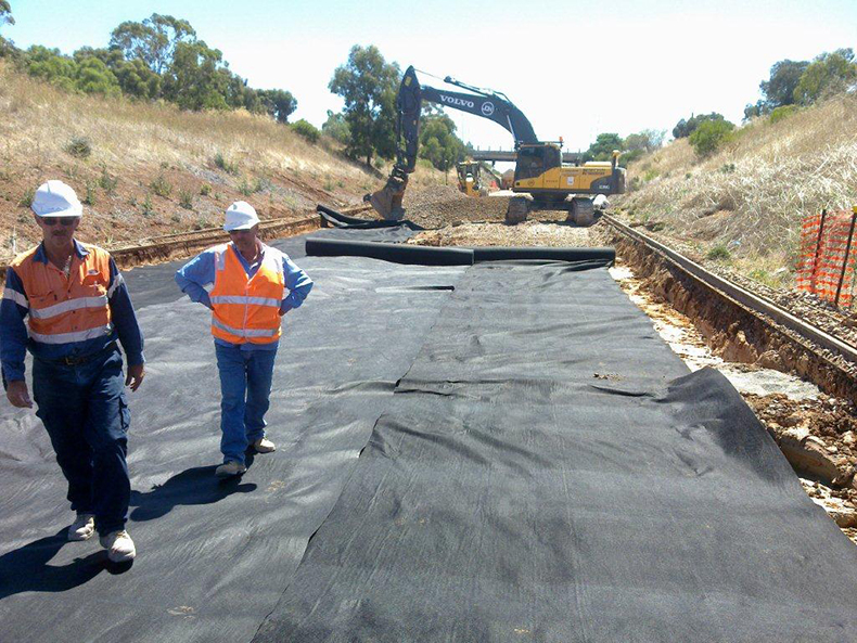 6、與其他材料(主要是瀝青或塑料膜)配合,在土層中形成不透水隔層(主要用于公路重鋪、修補(bǔ)等)。