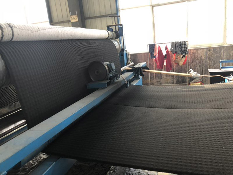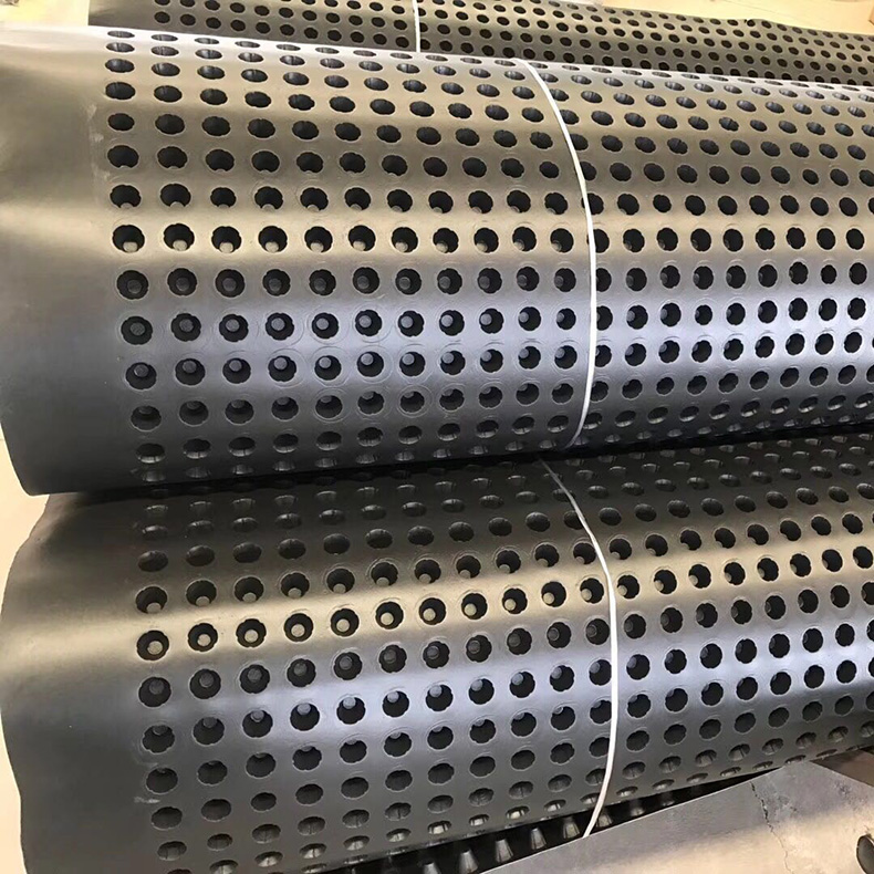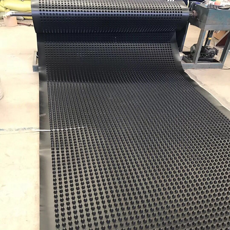 塑料排水板是由聚苯乙烯(HIPS)或者是聚乙烯(HDPE)為原料塑膠底板經(jīng)過沖壓制成圓錐突臺或者加勁肋的凸點(或中空圓柱形多孔)而成,經(jīng)過不斷的創(chuàng)新研發(fā)原料得到巨大提升和變更,現(xiàn)由聚氯乙烯(PVC)為原料壓制而成,抗壓強度和整體平整度得到大幅度的提升,幅寬有1~3米,長度有4~10米或者以上。
